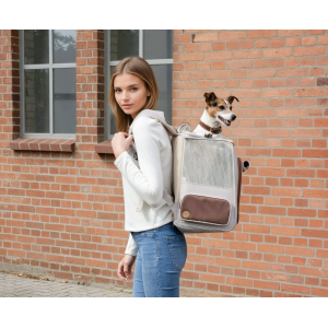 Mit seiner stabilen Hartschale, den atmungsaktiven Mesh-Einsätzen und dem komfortablen Innenpolster bietet dieser Rucksack deinem Hund ein sicheres und angenehmes Reiseerlebnis. Die großzügigen Sichtfenster lassen sich öffnen, sodass dein Hund neugierig den Kopf herausstrecken kann.